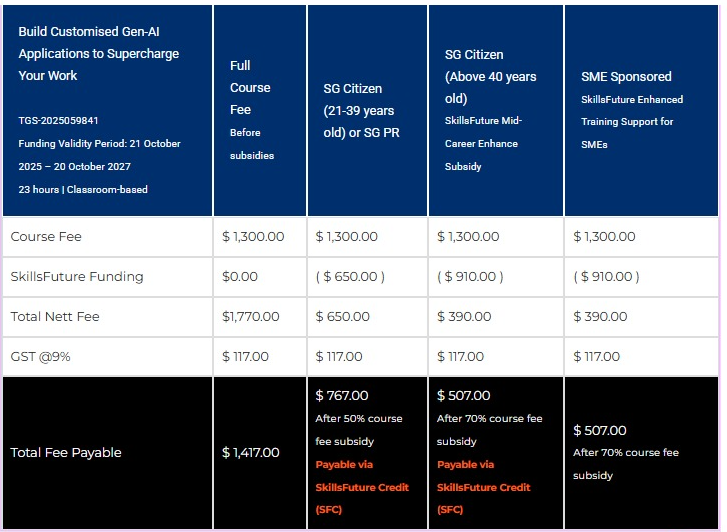 Full Course Fee with GST before subsidy: $ 1,417.00